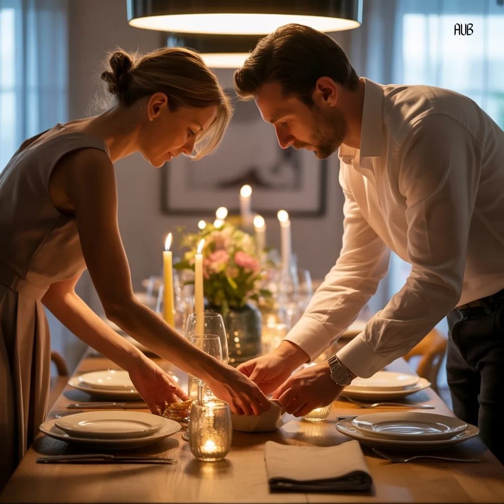 When plating is intentional, the meal feels complete rather than hurried. This phase also allows one partner to plate while the other begins loading dishes into the sink or dishwasher. Parallel tasks remain separate.